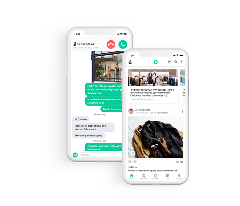 Share news, new collection launches and more through a company newsfeed that looks and feels like your very own social media platform. Make communication between your HQ, regional and store teams quick and easy by launching secure group chats, one-on-one conversations, and video chats.